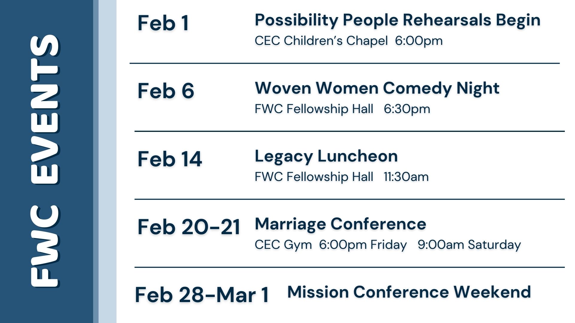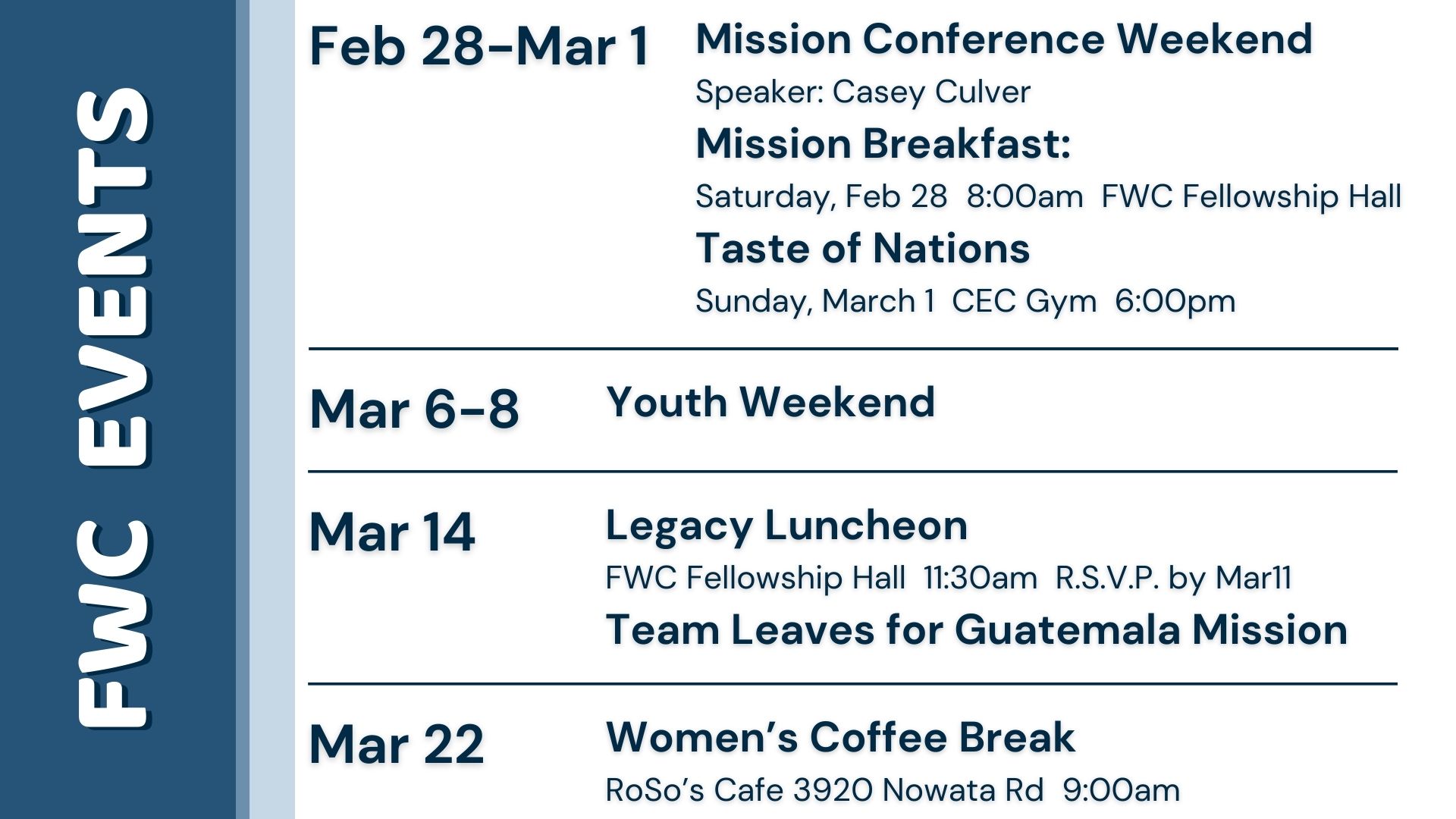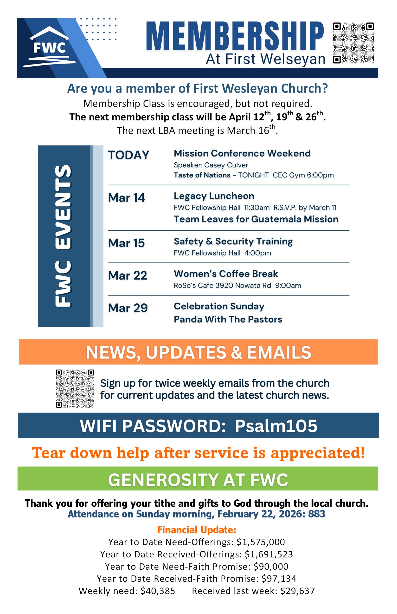 Keep up to date with what’s happening at First Wesleyan.