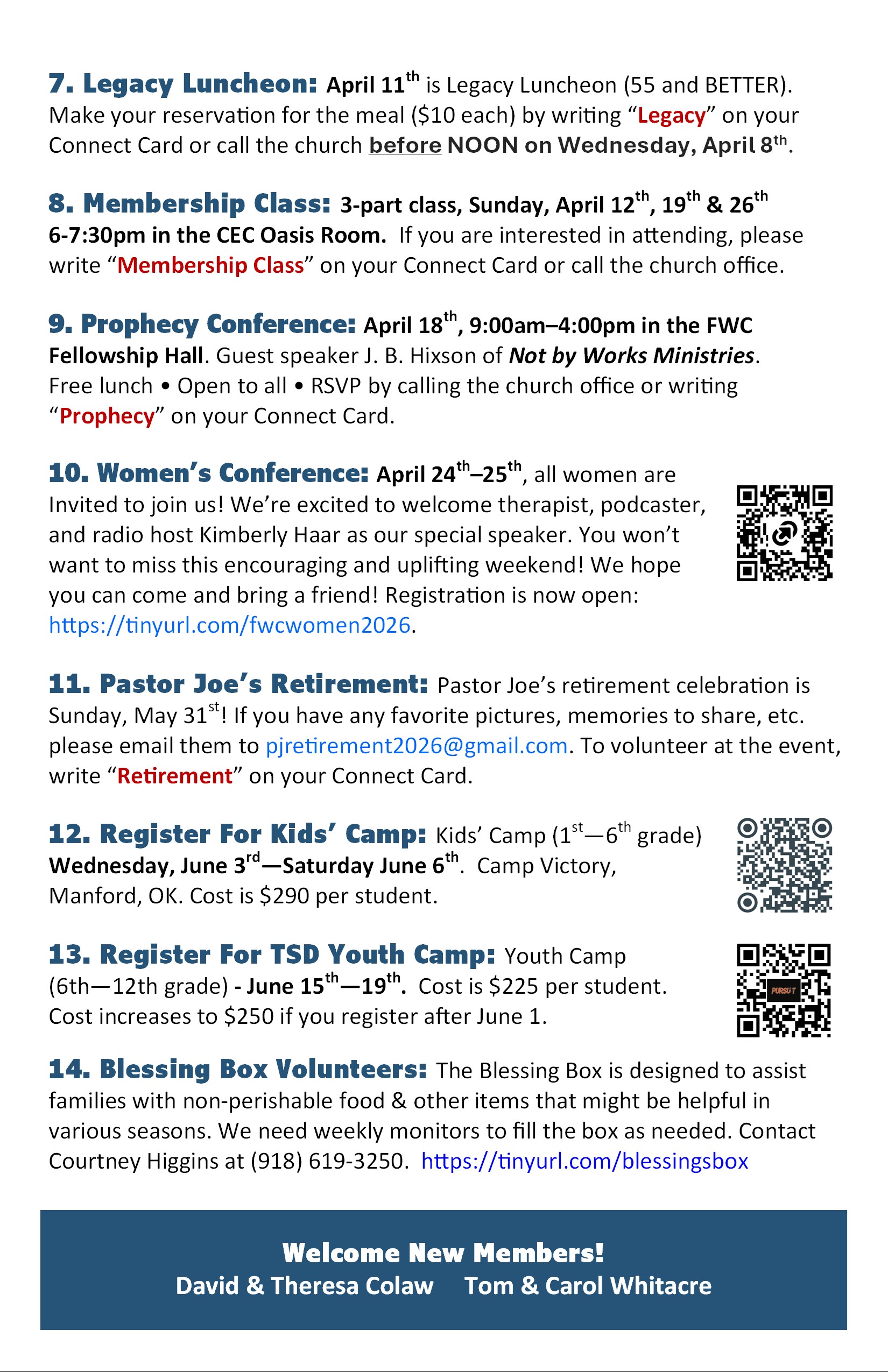 ANNOUNCEMENTS